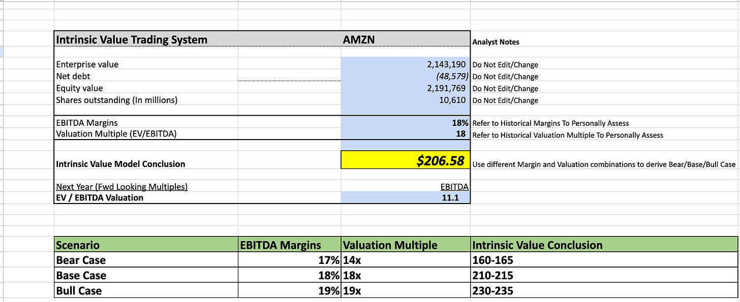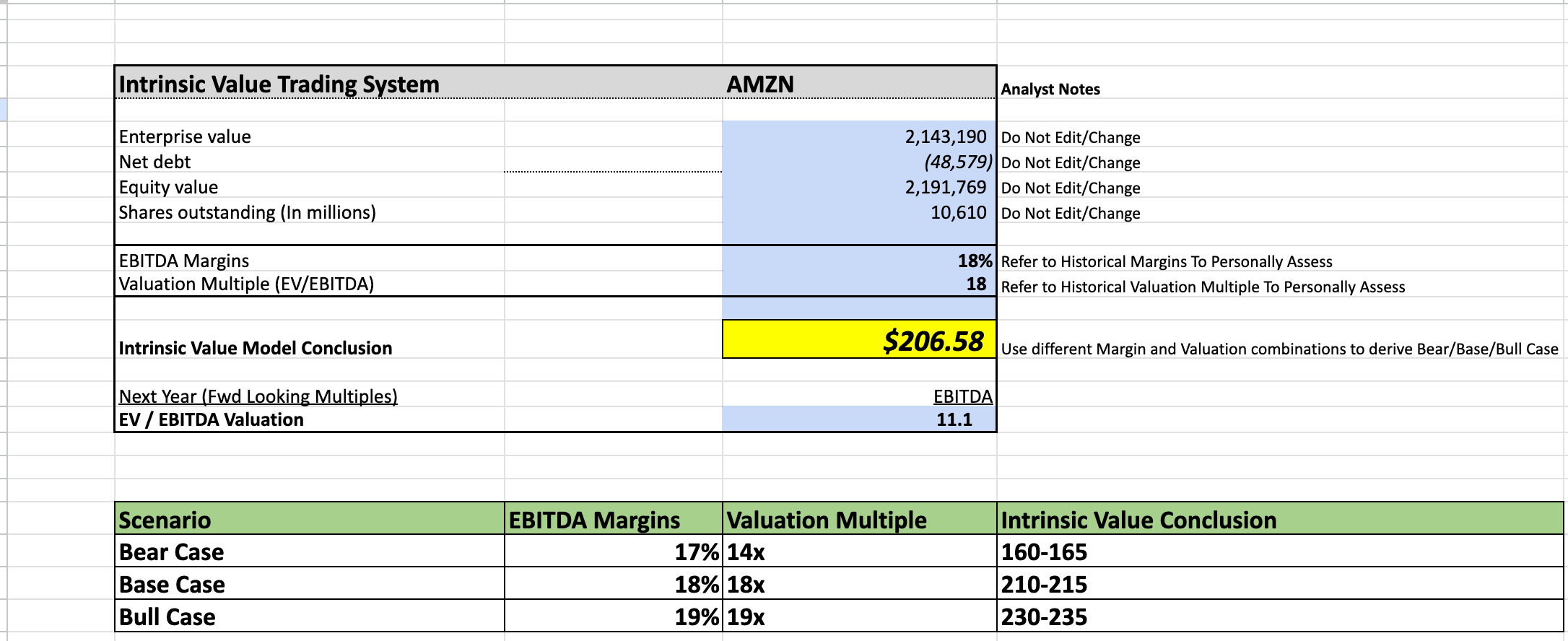 Leading up to this earnings season - Notice below that our DCF Bull Case for Apple was 210-215. Notice that the Bull Case for Amazon was 230-235.