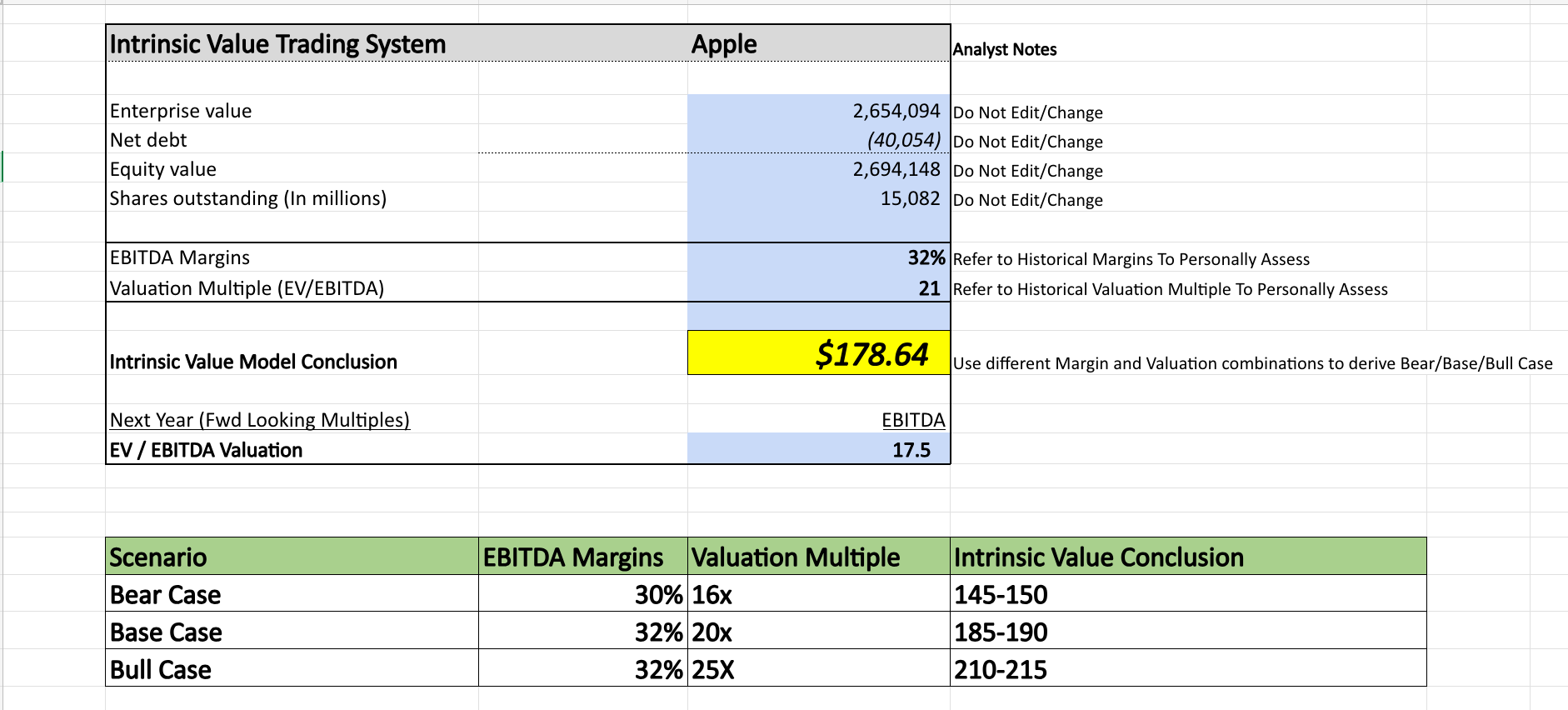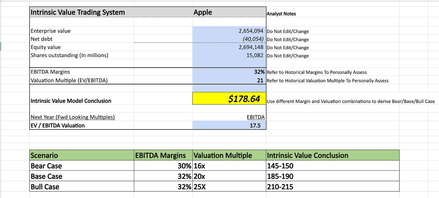 Let’s look at examples Amazon and Apple’s DCF Conclusions which have remained constant leading up to this quarter (updates will be provided for Members this coming week). Both great companies.